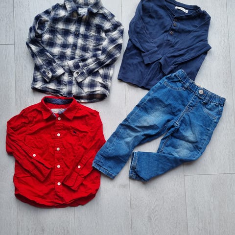 Nesten ubrukte bukser (svarte bukser, chinos og jeans) og to skjorter