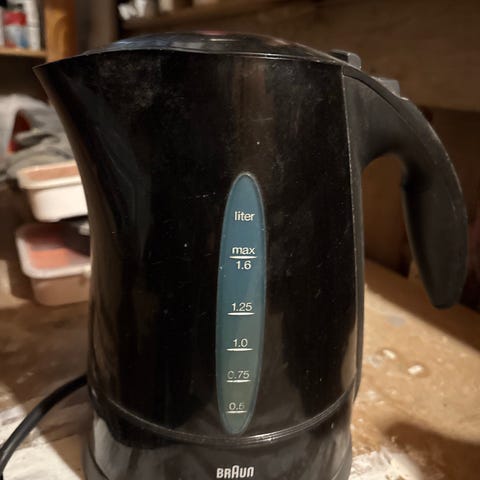 Braun vannkoker. Fungerer, men har stått ubrukt i lengere tid, da vi ikke lenger trenger den.