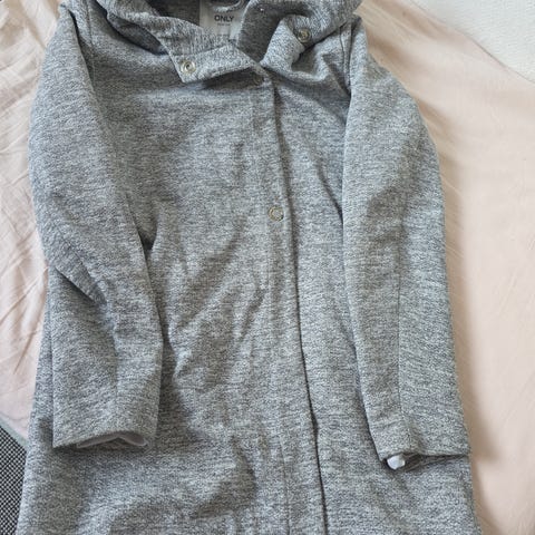 H&M L.O.G.G. Andre jakker i størrelse S for kvinner. Jakken har en grå ytre farge og en myk, hvit fleecefôr. Designet for komfort og varme.