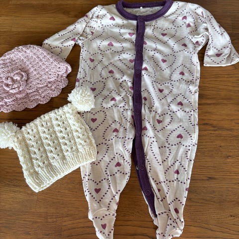 Tøyet er pent brukt, men flekker kan forekomme på strikketøyet.