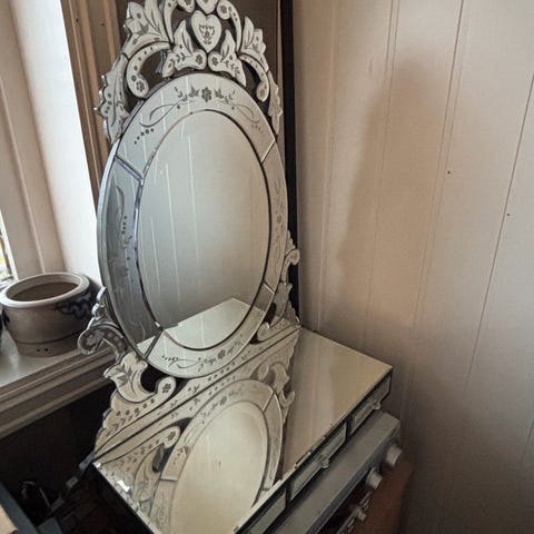 Et stort og eksklusivt speil til salgs,80cm.i diam.