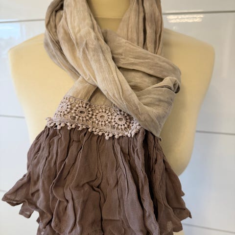 Fint brunt skjerf/sjal fra Cream med blonder.