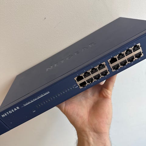 3Com OfficeConnect Fast Ethernet Switch med 8 porter. En nettverkssvitsj designet for å koble sammen flere Ethernet-enheter i et lokalt nettverk. Enheten har indikatorlys for portstatus og duplex-modus, og støtter hastigheter på 10/100 Mbps. Passer for bruk i små til mellomstore kontormiljøer.
