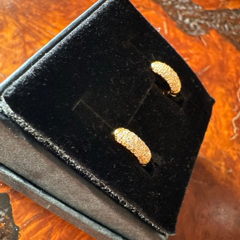 Nydelige diamantøredobber selges. Disse er i 18k gult gull med 0.70ct diamanter pr stk. totalvekt 1.4ct naturlige diamanter. Vekt: 5,8gr. Sertifikat medfølger.