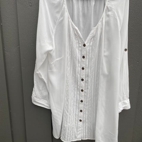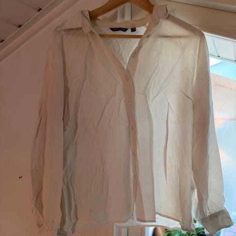 Hvit skjorte med v-hals.
