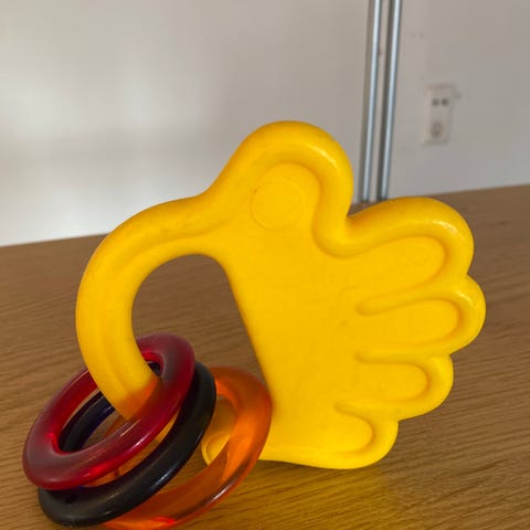 Vintage babyrangle babyleke gul med fargerike kuler