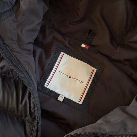 Nydelig og lun dunjakke fra Tommy Hilfiger i en lys, delikat gullfarge, foret med lys rosa fleece. Avtakbar fuskpels på hetten.