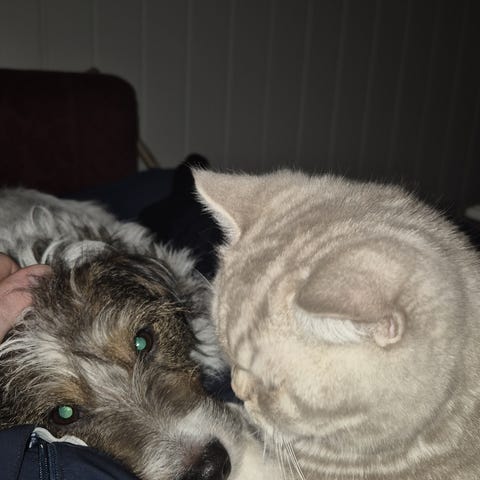 Han bor i dag sammen med en annen katt og en hund. Vi opplever at han ikke trives optimalt i denne flokken, og vi ønsker derfor å finne et hjem der han kan få blomstre enda mer. Han trekker seg mer unna pga hunden, og vi ser at han trives bedre når hunden ikke er tilstede..