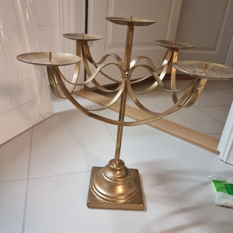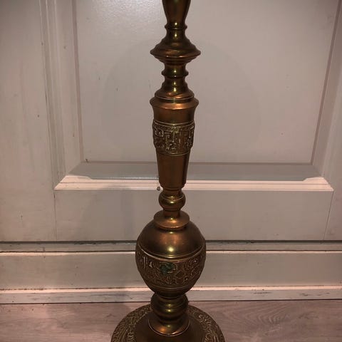 Vintage messinglysestake, høyde 48,5 cm, fotbredde 15,5 cm