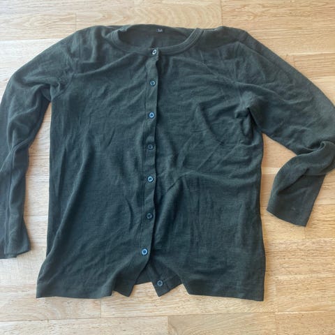 Myk og varm cardigan/jakke fra norsk SAFA. Delikat grønn-blå farge. Størrelse L. 80% ull og 20% tencel. Veldig lite brukt. 300 NOK