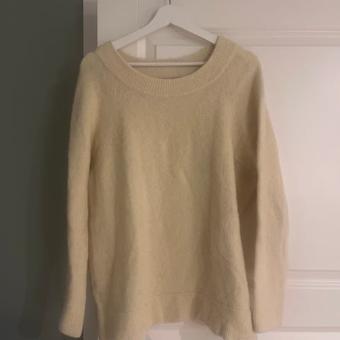 By Malene Birger genser i beige farge, størrelse L for kvinner. Genseren har knappedetaljer på skuldrene og er laget i et mykt materiale.