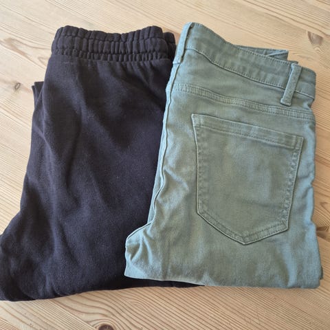 Bukser i størrelse 146/152. Fire joggebukser, en olabukse og en chinos. Lite brukt og i god stand.