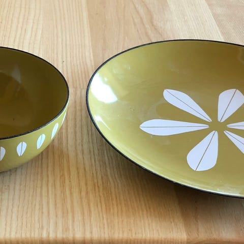 Grete Prydz Kittelsen designet selve fasongen på både boller og andre emaljerte kjøkkenartikler, mens Lotus-mønsteret ble designet av Arne Ingemann Clausen.