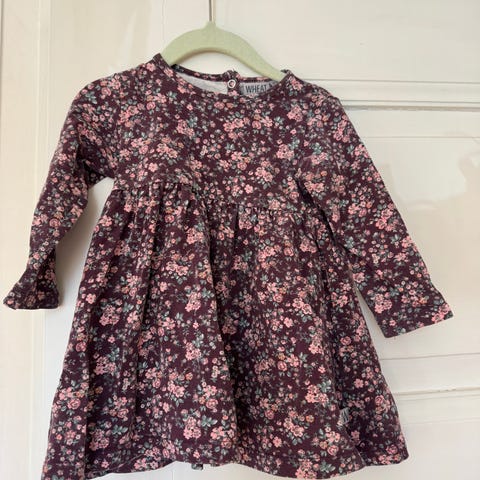 Nydelig kjole med blomster, smocking og sort fløyelsbånd. Kjole til jul eller nyttår Bruk en gang.