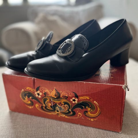 Selger pent brukte bunadsko i str 42. De er fra Klaveness og har blitt pent oppbevart i skoeske hele tiden. Ta kontakt om du lurer på noe