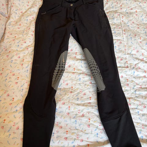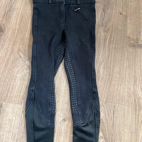 Behagelig basisridebukse i elastisk bomullstrikot med normalhøyt liv og salsnitt. Elastisk ved anklene. Linning med hemper. Lomme med glidelås foran. Ridebuksen er helforsterket med grep som gir et godt feste i salen.