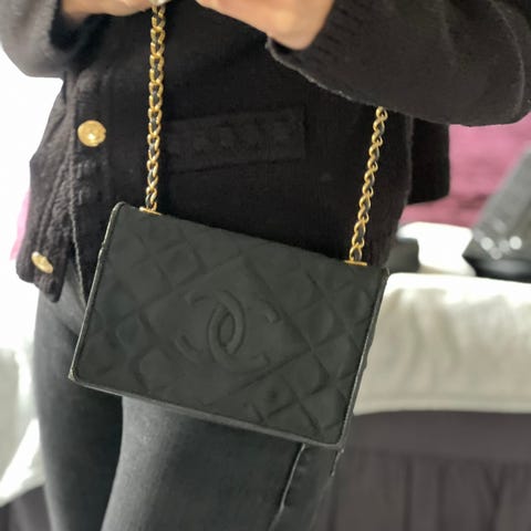 Denne vesken er fra 1990-1991 basert på serienummer da de enda brukte ekte gull på hardware. Vesken er laget i det klassiske quilted lammeskinnet som Chanel er kjent for.