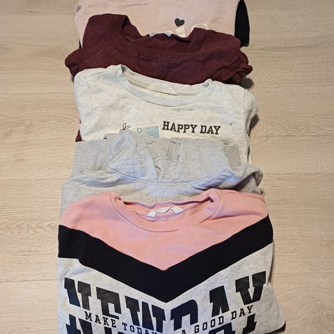 Gensere/hettegenser/strikket genser./jakker str 145/152, 152, en genser 150. Den blå og brune hettegenser/jakker er godt brukt.