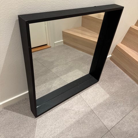Speilet har en kant nederst hvor du kan sette feks bilder eller sminkeprodukter.