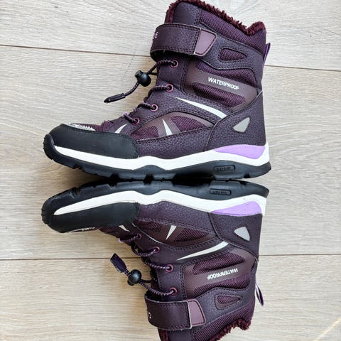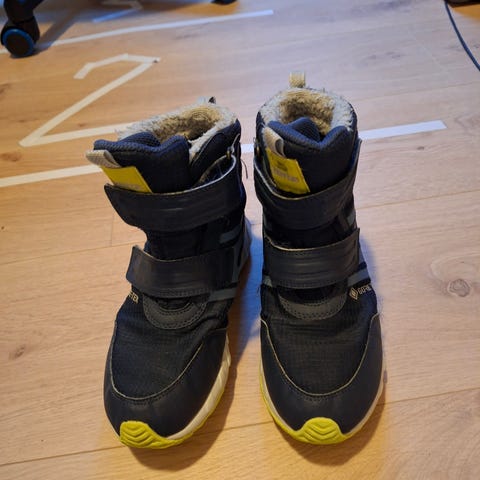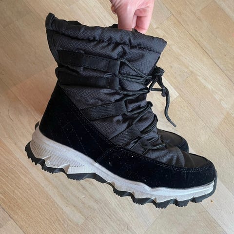 Arctic-camo mønstrede vintersko til gutt str. 35. Fôrede, men trenger såler! Vi har brukt ull-såler fra XXL