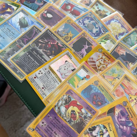 Lillebror og jeg har gravd fram vår barndoms samling med pokemonkort og ønsker nå å selge. Kortene kommer i alle forskjellige tilstander — alt fra NM til damaged, og enkelte kort har vi opptil flere av.