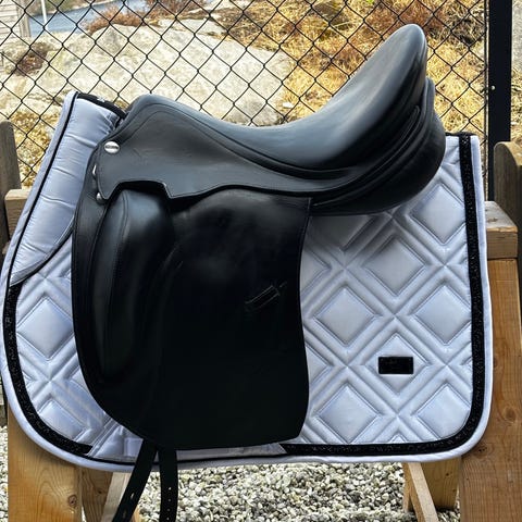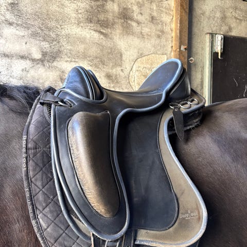 Erreplus Elena dressursal 18" og originalt 31 i bom. Kapper str S (2cm kortere enn originalt) merket ingenting til kortere kapper med mine lange bein.