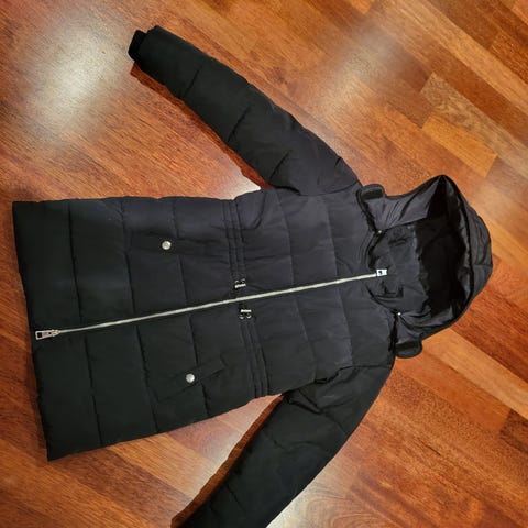 Svart vattert vinterjakke fra Kappahl i str 140 til salgs