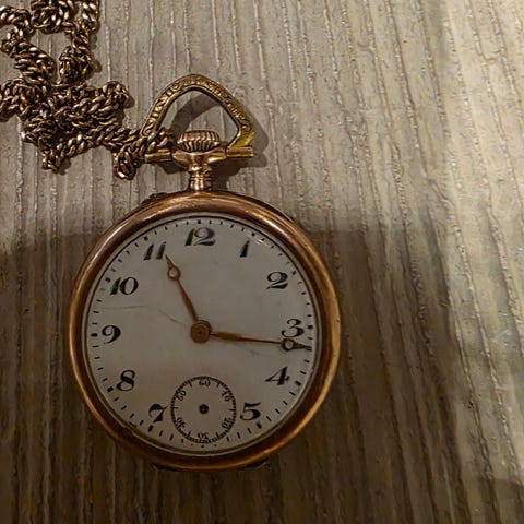 Gammelt dobbeltkapslet gull lommeur fra 1923
