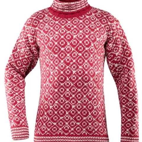 Pent brukt ulltrøye fra Devold. Noen små bruksmerker. Et lite blått merke på ryggen uten noen betydning. Mye bruk igjen.