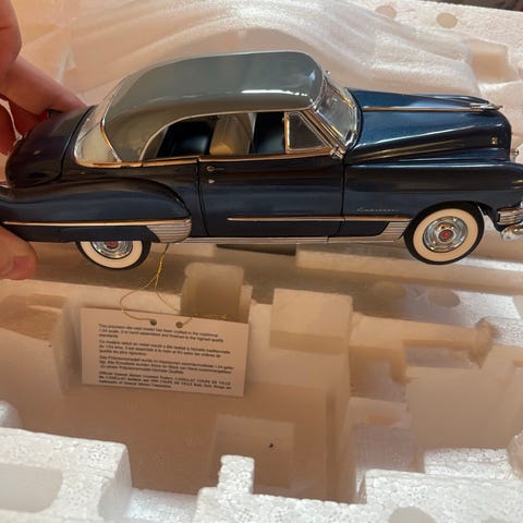 50`s Fifties Cadillac 1950 Convertible modellbil i rød og hvit farge. Modellen har detaljer som åpen takløsning, hvite seter og autentiske kromdetaljer. Skala 1:18 Passer for samlere og som dekorasjon. Fra Japan
