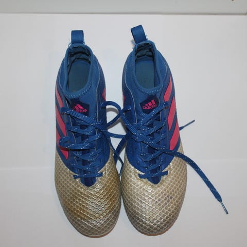 Adidas Predator fotballsko med høy ankel, i grønn og svart farge. Skoene har knotter under sålen for bruk på gressbaner. Størrelse 40 2/3