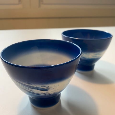 2 stk nydelige Bogstad lysestaker i lys blå sjattering. 1 helt strøken og en med noen skader (se bilder).
