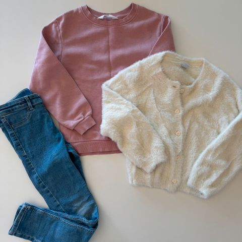 3 jeans (zara, hm og en litt usikker på hvilket merket) den ene er kjøpt med hullete look og de andre to godt brukt, men mere bruk igjen. Flekker kan forekomme.