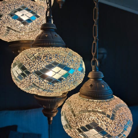 Unik marokansk taklampe selges grunnet flytting. Utrolig fin da den gir både lys og fint spill i taket. Må hentes.