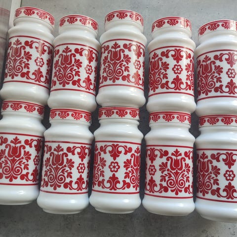 3 retro glassbeholdere. Litt usikker på hva det har vært i dem. Mulig kaffe fra 70 -tallet. Veldig rene innvendig. Kan brukes til å feks. Linfrø, nøtter og div. 15 cm høye, dia ca 7-8 cm. Selges samlet.