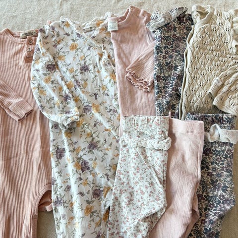 4 bukser, 2 kjoler, 5 bodyer og 1 genser.