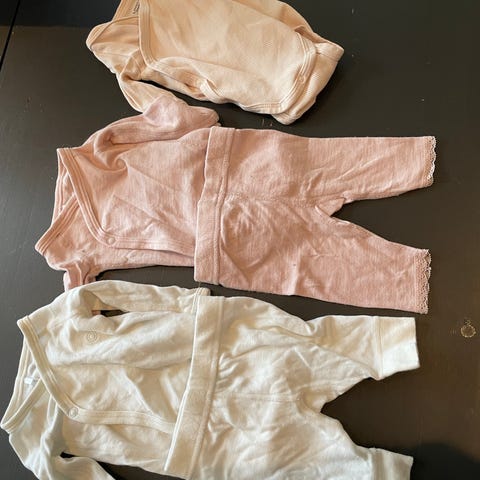 Yndige ullklær i str 38 fra LilleLam. Dress og body i lys rosa, samt body i fargen lyng. Sistnevnte har noen flekker etter jerndråper (se bilde).