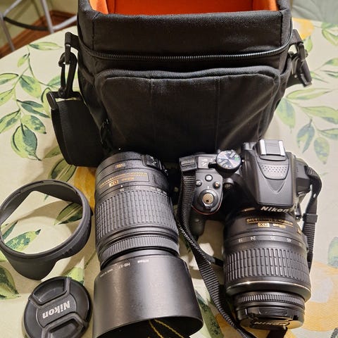 Nikon D5300 Digital speilreflekskamera med utskiftbar objektivfatning. Kameraet har en vribar LCD-skjerm, innebygd Wi-Fi og GPS, samt flere tilkoblingsporter inkludert HDMI og USB. Designet for fotografering med høy oppløsning og mulighet for manuell kontroll over innstillinger.