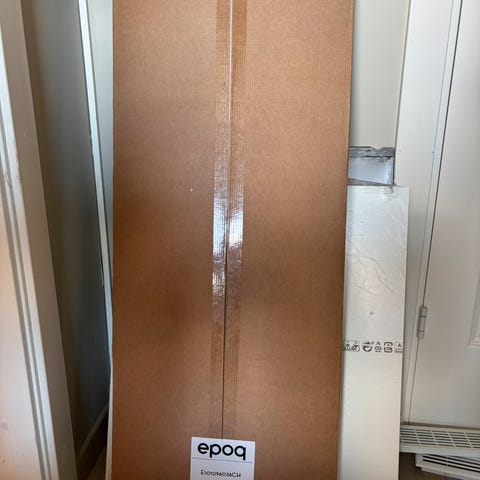 Monteres til veggen med skruer sett. Veldig enkelt å montere!