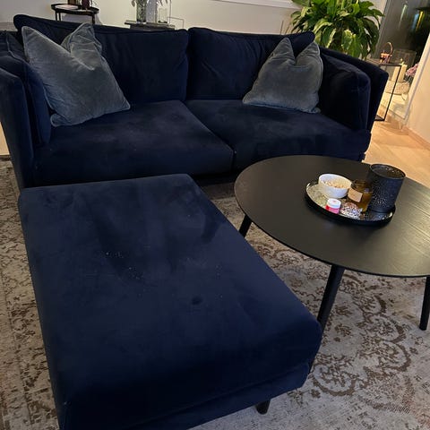 Super fin svart velur sofa.