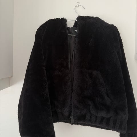 Svart jakke i fuskepels fra bikbok, jakken er i str.L