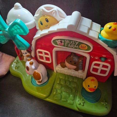 Fisher-Price Læringsleke Hus for barn med fargerike knapper og interaktive elementer. Leken har tall- og bokstavtema, samt ulike former og lyder for å stimulere barns læring og motoriske ferdigheter.