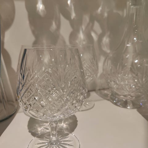 De er laget av blyfritt krystall, og har en blank overflate.