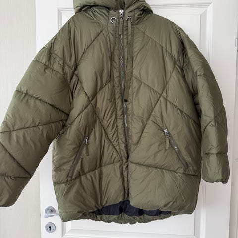 Vindtett og vannavstøtende. Tynt foret, lett og god jakke. Egner seg fint på skiturer da den isolerer men samtidig kan tilpasses med tykkere bekledning under jakken. Har en liten flekk på undersiden av ene arma, ikke forsøkt å vaske. Svært lite brukt.