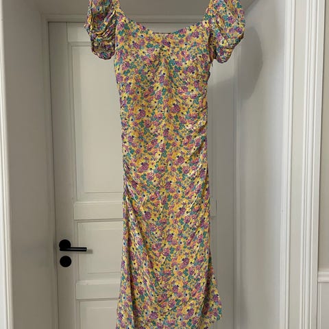 ByTiMo Structured Cotten Shift Dress i en oversized størrelse small som passer til og med large. Den er av kvalitets bomull, har lommer, og et vakkert blomstermotiv. Fremstår som ny. Bilder av kjole på modell er lånt.