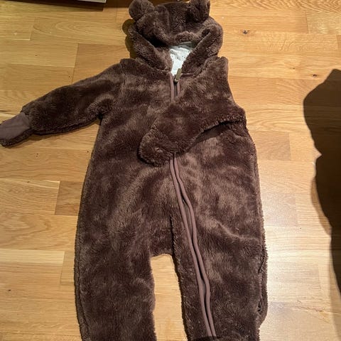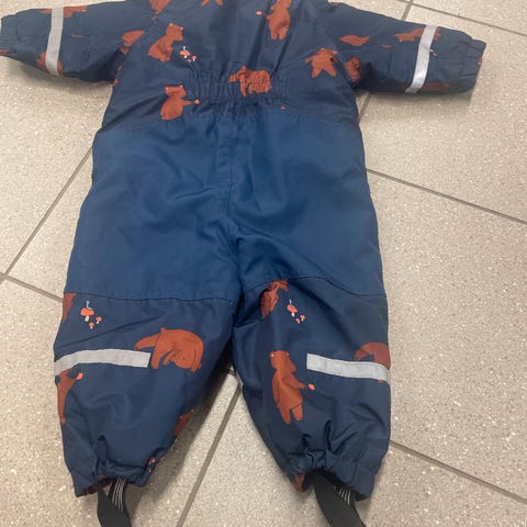 H&M vinterdress for barn i størrelse 74, farge svart, designet for gutt. Dressen har en polstret utside og et mykt, varmt fôr på innsiden, egnet for kalde værforhold. Den har hette og hel glidelås foran for enkel påkledning og avkledning.