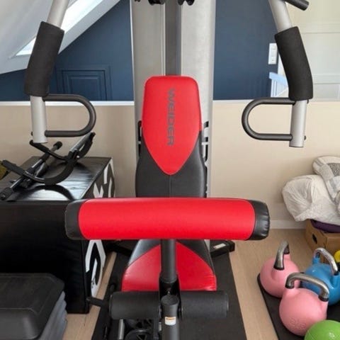 Weider 8700I treningsapparat multigym med vektstabel. Farge svart og rød. Egnet for styrketrening med flere øvelser inkludert. Kompakt design for hjemmebruk.