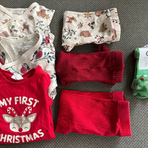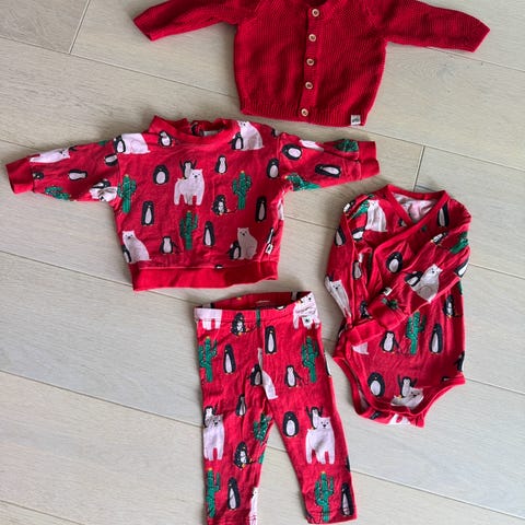 Finklær til jul? Body øverst til venstre er solgt. Bukse og vest strl 68. Bodyen nede til høyre er en litt stor 62. Masse bruk igjen.