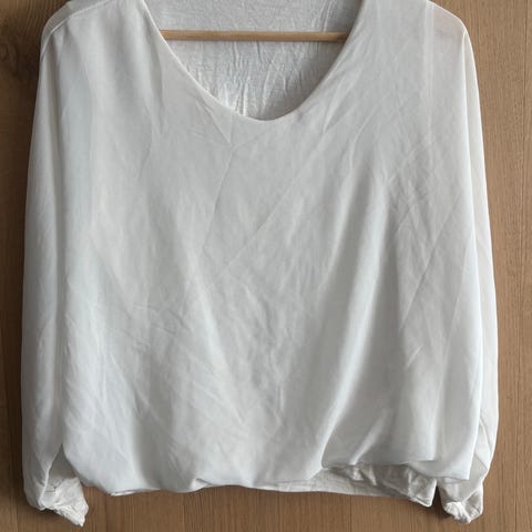 Lang ermet hvit topp med utringet hals , motiver og bling.