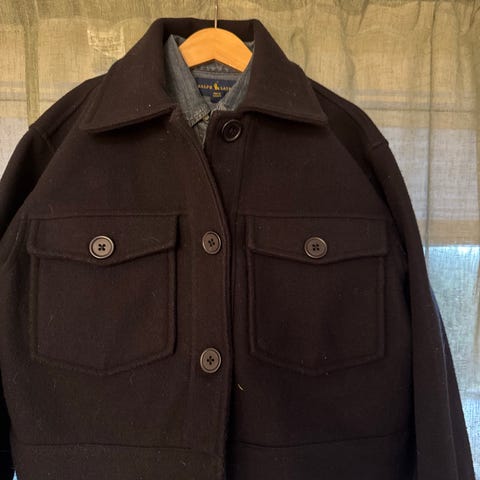 Størrelseslappen sitter ikke på, men den måler 53 cm på innsiden ved nederste kant